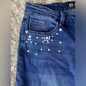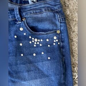 Anne Klein Girlfriend Bedazzled Pearl Denim Jeans Women’s Size 6P Petite