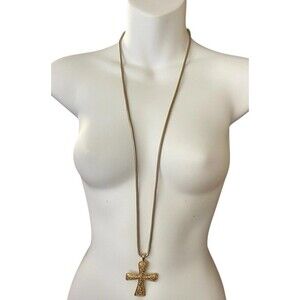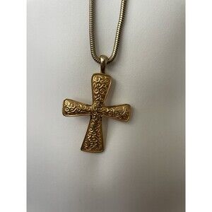 Anne Klein Gold Brushed Cross Necklace Vintage Signed 2 5/8 X 1 5/8 17” Chain