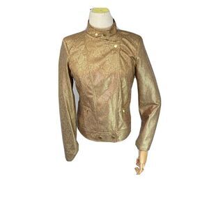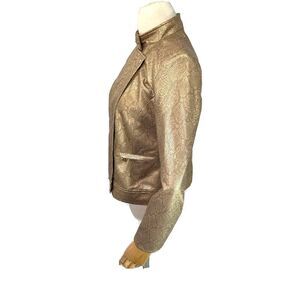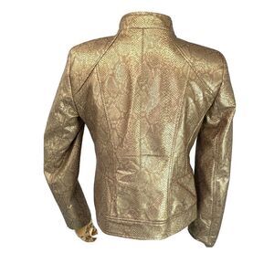 Anne Klein Gold Snakeskin Faux Leather Moto Jacket Size XS Zip