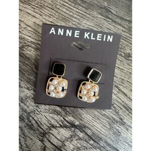 Anne Klein Gold Tone Black Earrings NEW Officecore Work Attire