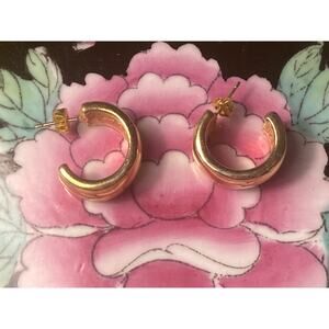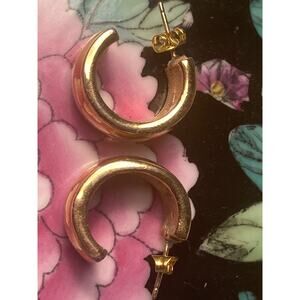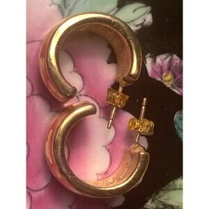 Anne Klein Gold Tone Hoop Huggie Earrings Pierced ~ Timeless Simplicity