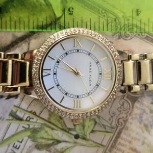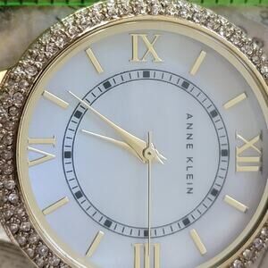 Anne Klein Gold Watch with Crystal Bezel & Roman Dial Model AK/1498