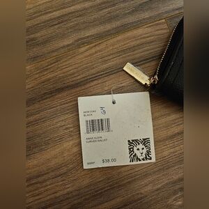 This Anne Klein wallet combines elegance and functionality with its sleek design and luxurious gold and black color scheme. The compact, square shape and zip-around closure make it a versatile accessory for everyday use. The metallic Anne Klein logo adds a touch of sophistication to this minimalist piece.