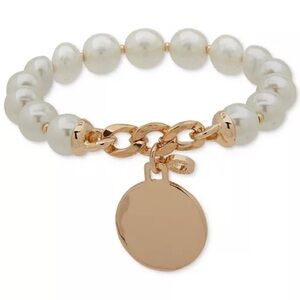 Anne Klein Gold-Tone Imitation-Pearl Stretch Charm Bracelet