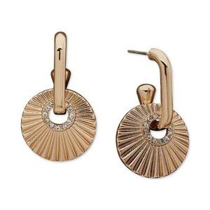 ITEM: Anne Klein Gold-Tone Textured Pave Crystal Accent J-Circle Post Dangle Earrings