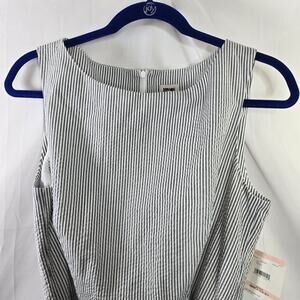 Anne Klein Gray and White Stripe Seersucker Dress Size 10 NWT