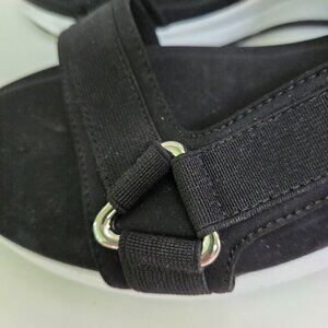 Anne Klein Grazie Black Textile Comfort Sandal Size 7M. Super Lightweight, Hook And Loop Closure, Cushioned Insole, Retail $129. Excellent Pre-Owned Condition