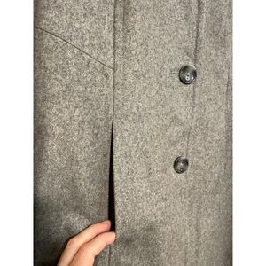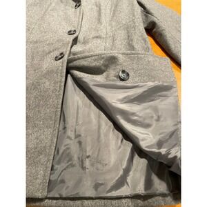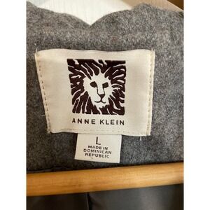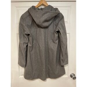 Anne Klein Grey Wool Blend Hooded Short Overcoat L Classic Designer Timeless