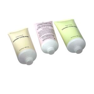 Luxurious hand cream set by Anne Klein. Includes three scents: Violet & Bergamot, Tea Tree, and Coconut. Elegant packaging.