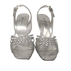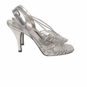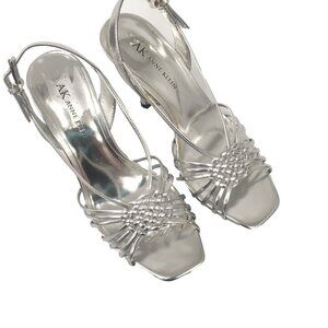 Up for sale is a pair of silver heels sandals slingbacks from Anne Klein.