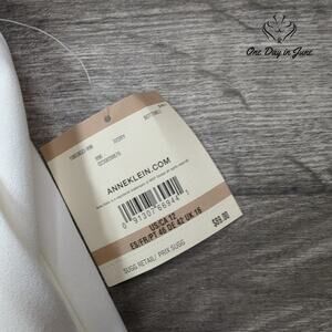 Dear reader, allow me to present these elegant white wide-leg trousers from the esteemed house of Anne Klein, crafted from a most becoming blend of polyester and elastane. The high-rise silhouette promises both comfort and sophistication, perfectly suited for a morning promenade through the park or an afternoon of calling upon one's dearest friends.