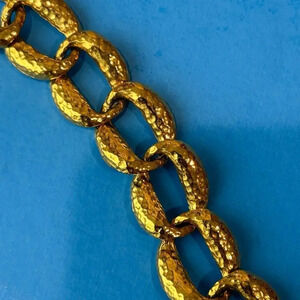 Vintage 80s hammered gold oval chain necklace with toggle clasp.