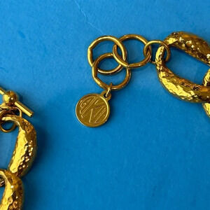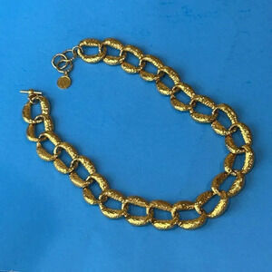 Anne Klein II 80s Hammered Gold Oval Chain Toggle Clasp Necklace Signed