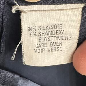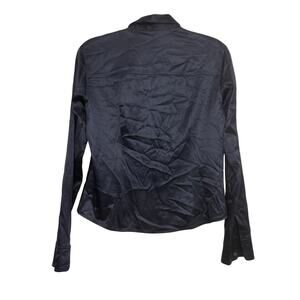 Anne Klein II Black Silk Stretch Button Up Shirt Medium Long Sleeve Blouse