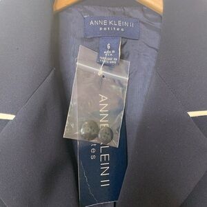 Anne Klein II | NWT VINTAGE DEADSTOCK Navy Piped-trim Long-Sleeve Lined White Piping Accent Blazer in size 6 Petite