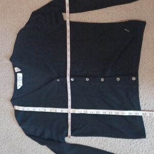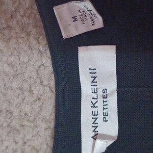 MP Anne Klein II petite matching set. black. slightly sheer. textured diamond design. sleeveless top, matching button up long sleeve cardigan. vintage. 55% cotton, 45% rayon. made in Italy. dry clean only. excellent pre-owned condition.