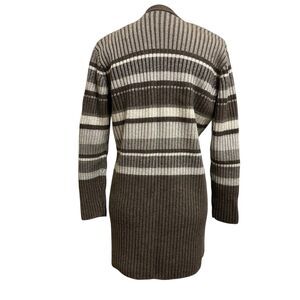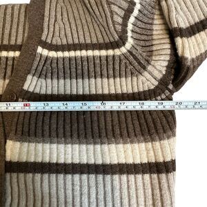 Anne Klein II Ribbed Longline Cardigan 100% Wool M Brown Business Casual Office