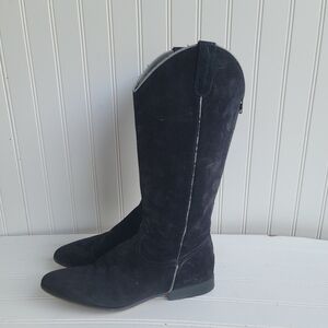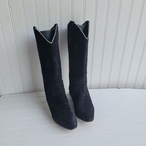 Anne Klein II Women's Suede Mid Calf Boots Shoe Black Zipper Low Heel Size 7.5