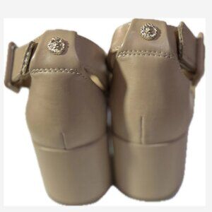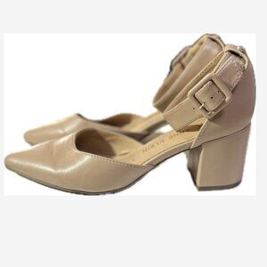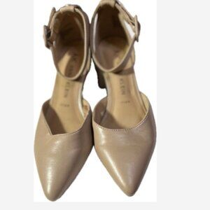 Anne Klein Iflex Heel Pump Shoe Women Size 6.5 M Tan 2.5" Block Heel Ankle Strap