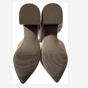 The Anne Klein Iflex Heel Pump Shoe in size 6.5 with a 2.5" block heel is a stylish and versatile option for women. Featuring a pointed toe and ankle strap closure, this shoe is perfect for various occasions including casual outings, parties, business meetings, and travel. The tan color and solid pattern add a touch of sophistication, while the cushioned and lightweight design ensures comfort. Made of synthetic material with a foam insole, these pumps are durable and easy to wear year-round. Perfect for a feminine and chic look, these Anne Klein heels are a must-have for any wardrobe. Excellent condition