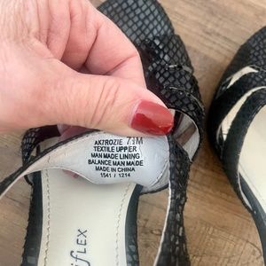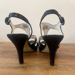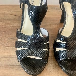 Anne Klein Iflex Heels, Open Toe, Black snakeskin, shiny, 7.5, EUC