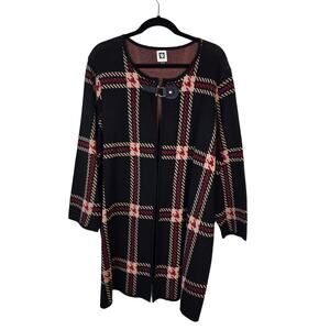 Anne Klein Jacket Women's 2X Black Red Tan Plaid Open Front Strap Close Classic Academia Dark Academia Career Chic Workwear Academia office preppy Old money