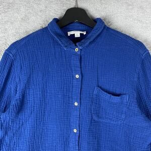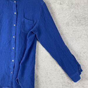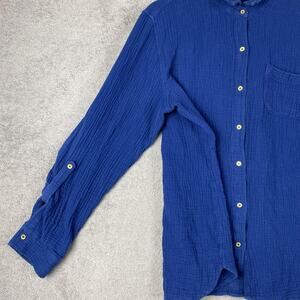 Anne Klein Jeans Shirt Womens Large Blue Lucile Gauze Cotton Button Front Casual