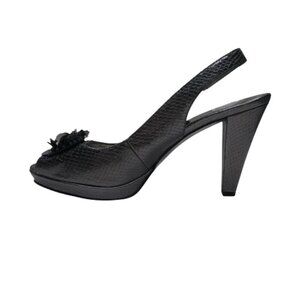 Anne Klein Kessa Pewter Silver Snakeskin Print Peep Toe Pumps Heels Womens 7.5