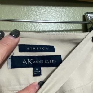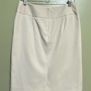 Simple Anne Klein khaki skirt in a size 6. Hidden zipper in back as well as a back slit for easier movement. Fully lined, has a bit of stretch.