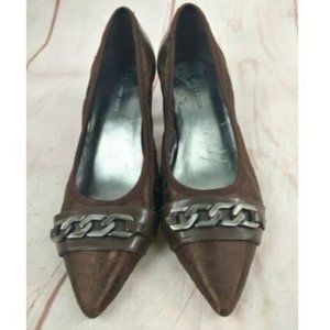 Color: Brown with silver/pewter color chain detail across the toe