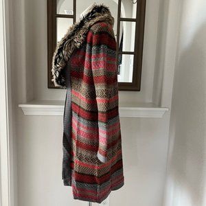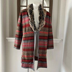 ANNE KLEIN CARDIGAN SWEATER WITH DETACHABLE FUR FIRE RED MULTI