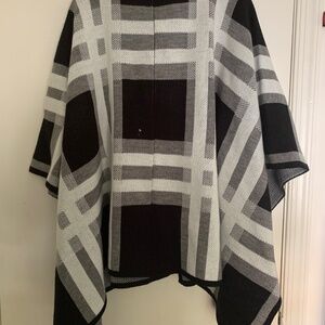 Anne Klein Knit Plaid Cape Poncho Wrap | Black Gray White | Women’s 2X