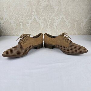 Anne Klein Laden I Flex Size 8.5M Tan Perforated Textile Lace Up Loafers NWOT
