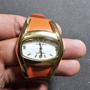 Anne Klein Ladies Quartz Watch Mother Of Pearl Gold Tone Orange Strap Working sh