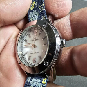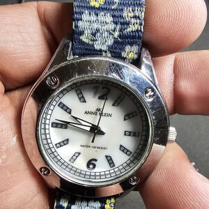 Anne Klein Ladies Quartz Watch Silver Tone Mother Of Pearl Dial Working 10/9471 band is not original shows signs of wear such as scratches see pictures for reference