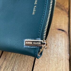 Anne Klein Leather Green Pebble Wristlet with Beige Interior