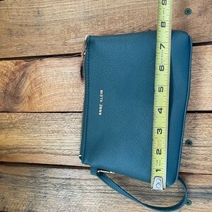 Anne Klein Leather Green Pebble Wristlet with Beige Interior. Bag is in very good condition.
