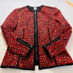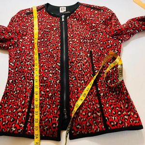 Anne Klein Leopard Print Full Zip Blazer Jacket Red Black Size 12