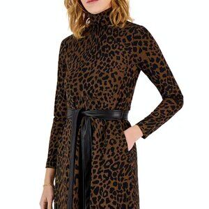Anne Klein Leopard Print Long Sleeve Mock Neck Midi Dress in Women's 12