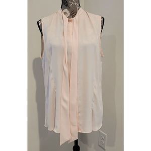 Anne Klein Light Peach Sleeveless Button-down Blouse with Tie