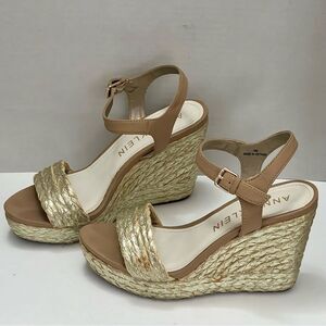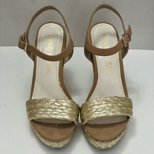 Anne Klein Lina Espadrille Wedge Shoes Women’s 10 Gold Woven Metallic Designer