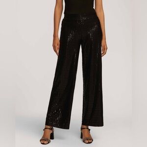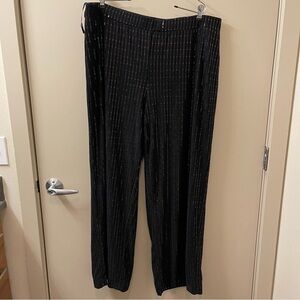 Anne Klein Linear Shine sparkly Pull On Wide Leg Pant plus size 2X XXL black