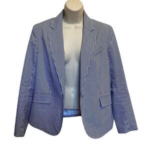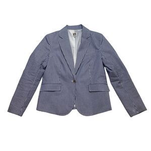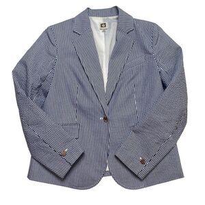 Anne Klein Lined Striped Blazer Jacket Gold Lion Buttons Sz S