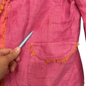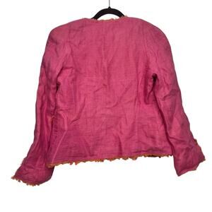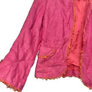 Anne Klein Linen Blazer Pink Orange Fringe Petite 6P Shoulder Pads Y2K Revival