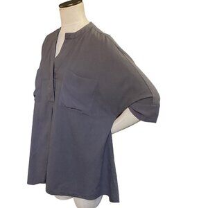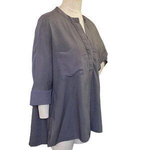 Anne Klein Linen Blend Lagenlook Pocket Tunic Top L Gray 115i