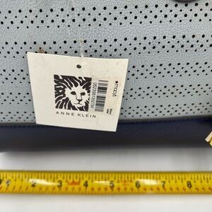 Elevate your style with this stunning Anne Klein Lion Logo Purse, a perfect blend of elegance and playfulness! This chic handbag features a rich navy exterior, accented beautifully with pale blue and vibrant yellow tassels that add a pop of color and personality.