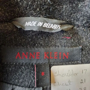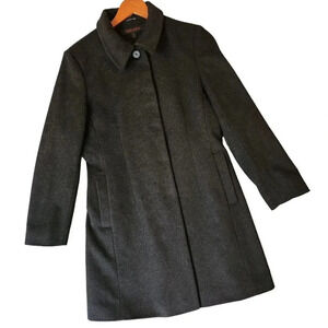 Anne Klein Long Trench Coat Size 8 Charcoal Gray Wool Lined Collared Long Sleeve