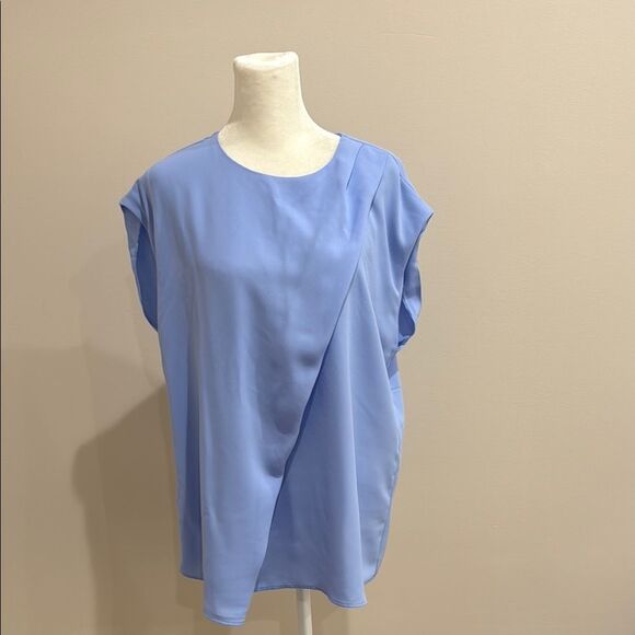Elegant blue women's top with a stylish drape design. Perfect for any occasion.