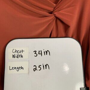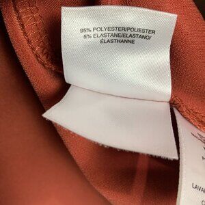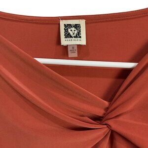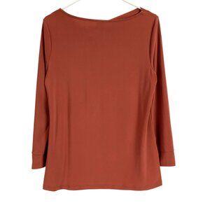 Anne Klein M Orange Drape Neck Blouse Long Sleeve Stretch Top Gold Button Cuff