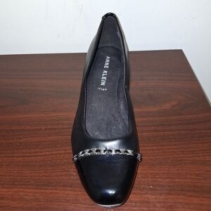 This is a pair of Anne Klein Mariza black flats with a silver chain accent over the toes in a size 10M. They're pre-loved and in excellent condition (see pics). A closet staple for any woman. Ideal for work or casual outings. They're nice enough to wear for formals, as well as comfortable.